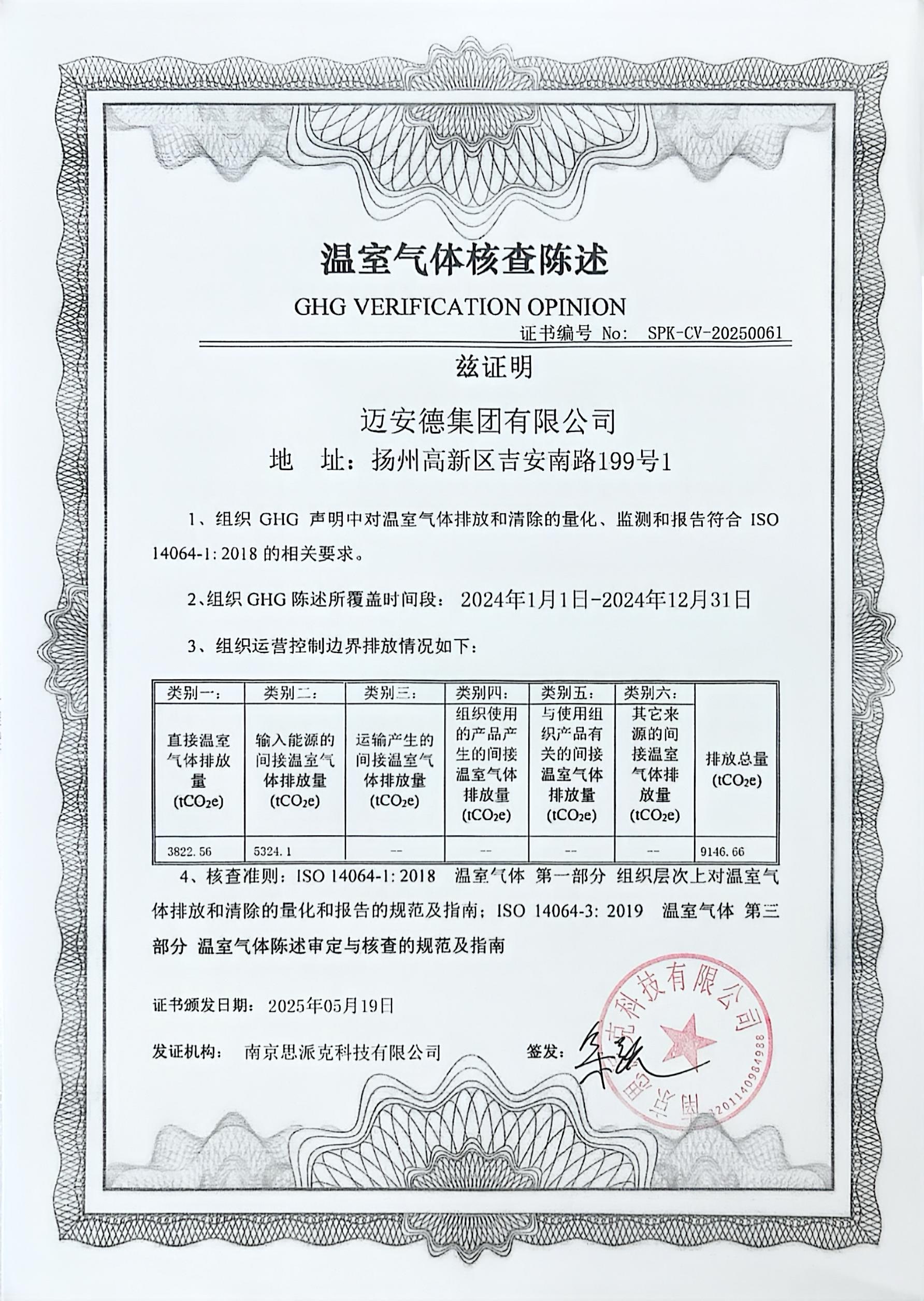 各部門、各位同志: 2025年江蘇省綠色工廠申報工作已經全面開始,按照有關文件規定,現對我單位《溫室氣體核查陳述》予以公示。 公示期自2025年7月25日至2025年7月31日止。 如對申報有異議,請在公示期內以書面形式并簽署真實姓名或電話向公司行政中心反映。群眾如實反映公示對象問題受法律保護。 異議接收部門:行政中心 聯系人:袁 媛 聯系方式:0514-87849000-1902 邁安德集團有限公司