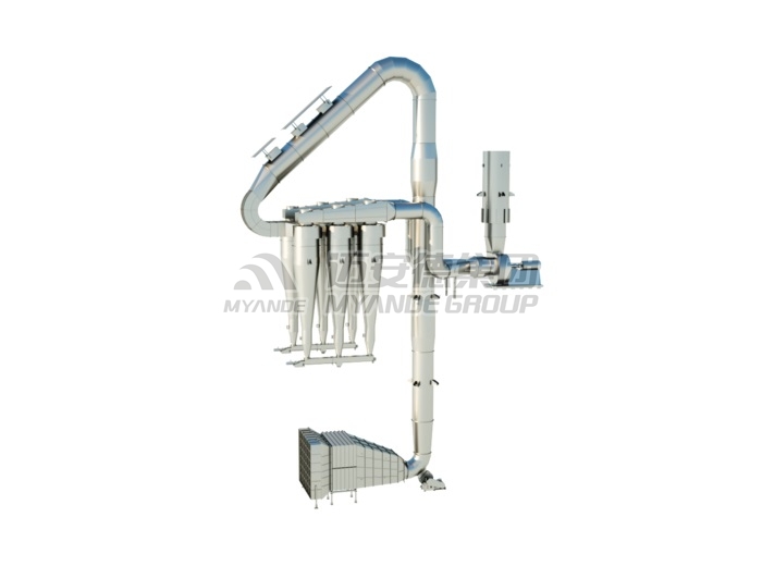 邁安德氣流干燥機有負壓、正壓及正負壓干燥三種形式,含一定水分的濕物料與一定溫度的熱空氣在干燥管道內進行傳熱、傳質而達到物料干燥的目的。該機廣泛應用于輕工、化工、食品等行業的要求快速干燥及熱敏性的粉狀或片狀物料的烘干,如淀粉、蛋白粉、米糠、纖維、食品工業濾餅類粉性不大的廢渣等。